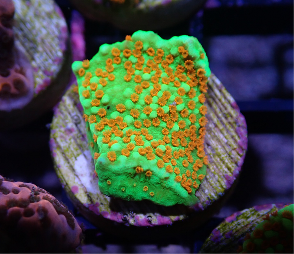 AQUACULTURED ‘SR ORANGE SKITTLES’ MONTIPORA FRAG