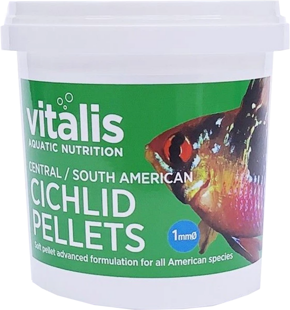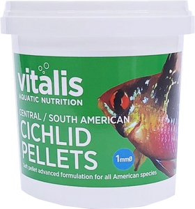 Carnivorous Cichlids need a different diet to their vegetarian cousins. Vitalis Central/South American Cichlid Pellets (formally known as Newera Central/ South American Cichlid Pellets) contain a high amount of protein, making them the ideal food for these meat eating fish. The pellets sink slowly, giving the fish chance to hunt and feed. They also produce little waste which means reduced waste in your tank.